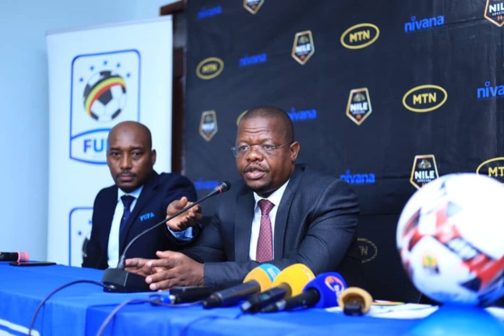 FUFA President Moses Magogo at the official unveiling of new Uganda Cranes Head Coach