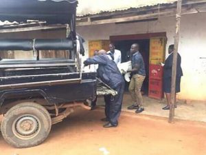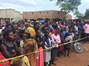 Locals say the late closed the shop with the visitor still around and inside but where very shocked to realise that the woman was dead the next morning. The killer is suspected to must have run away with a large sum of money. Locals discovered that Namugaanyi was dead when one of them had gone in the morning to make a mobile money transaction who smelt something fishy when the late was not resposnding to his shouts only to use the behind door where he saw the woman floating in a pool of blood.